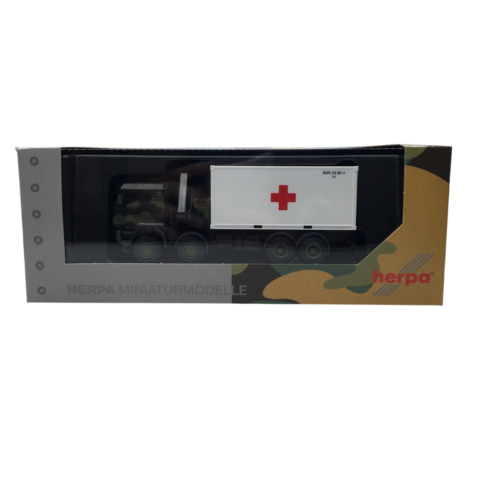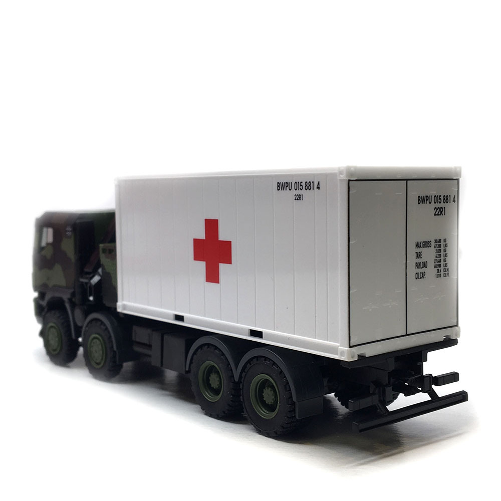 Iveco Trakker, avec grue et conteneur de la Croix Rouge - HERPA 747288 - HO 1/87