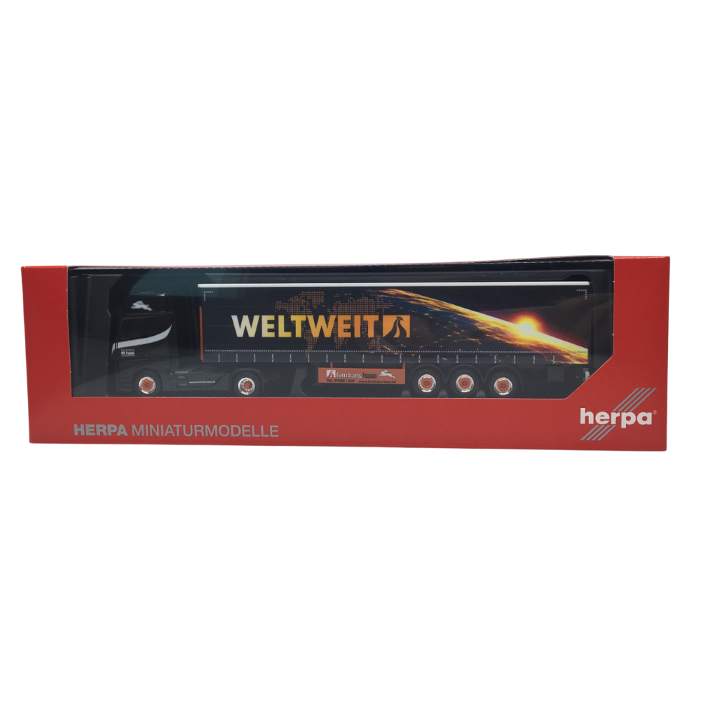 Mercedes Benz, Actros L18, Semi-remorque à rideaux coulissants, Gigaspace, Ferntrans Hass/worldwide - HERPA 320023 - HO 1/87