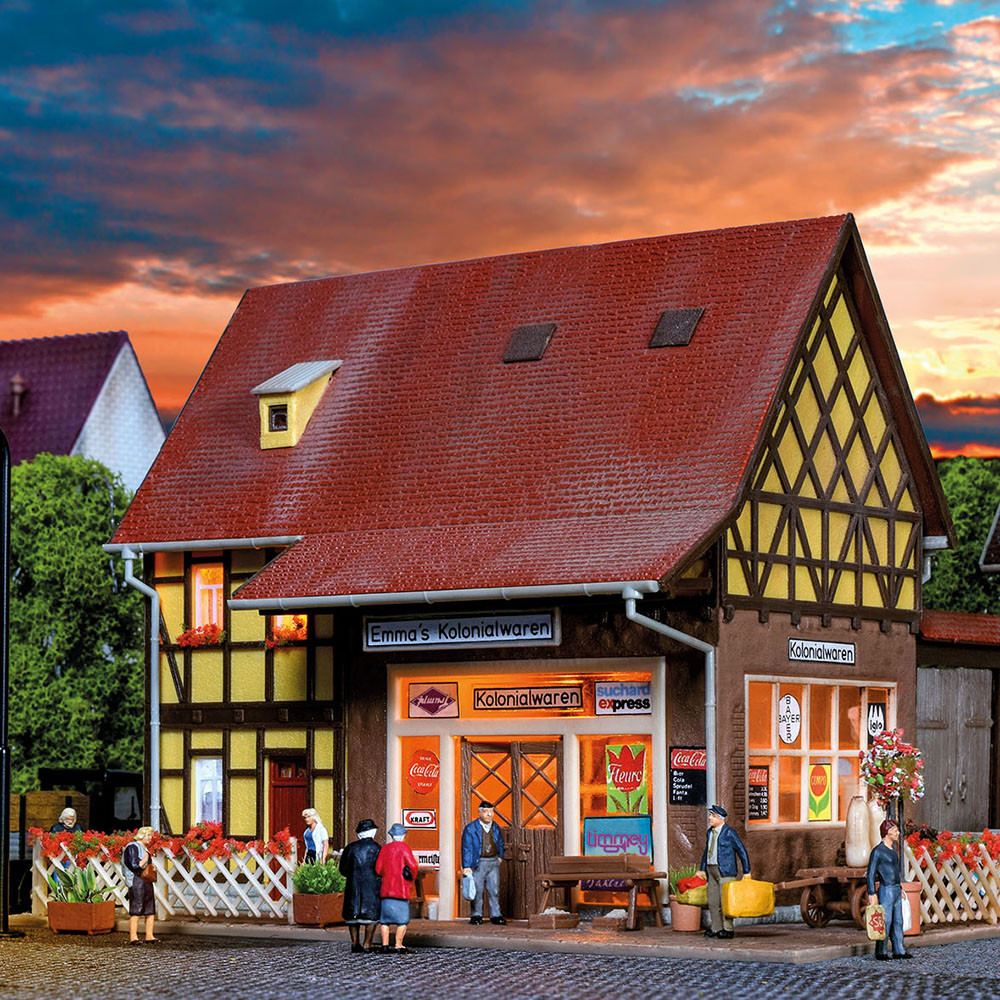 Magasin d'angle, avec éclairage intérieur, LED kit fonctionnel - VOLLMER 43688 - HO 1/87