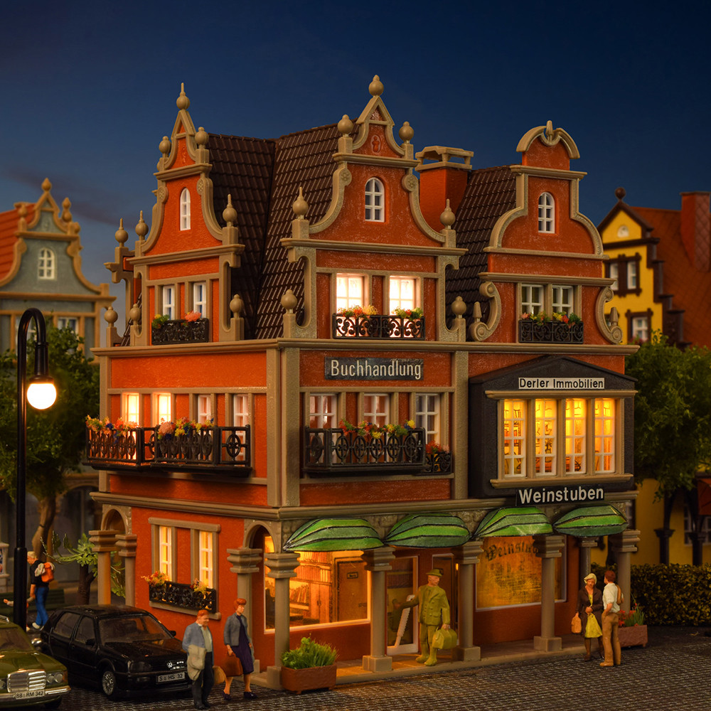 Maquette à l'échelle HO 1/87 d'une Librairie avec éclairage d'intérieur, pour votre diorama.