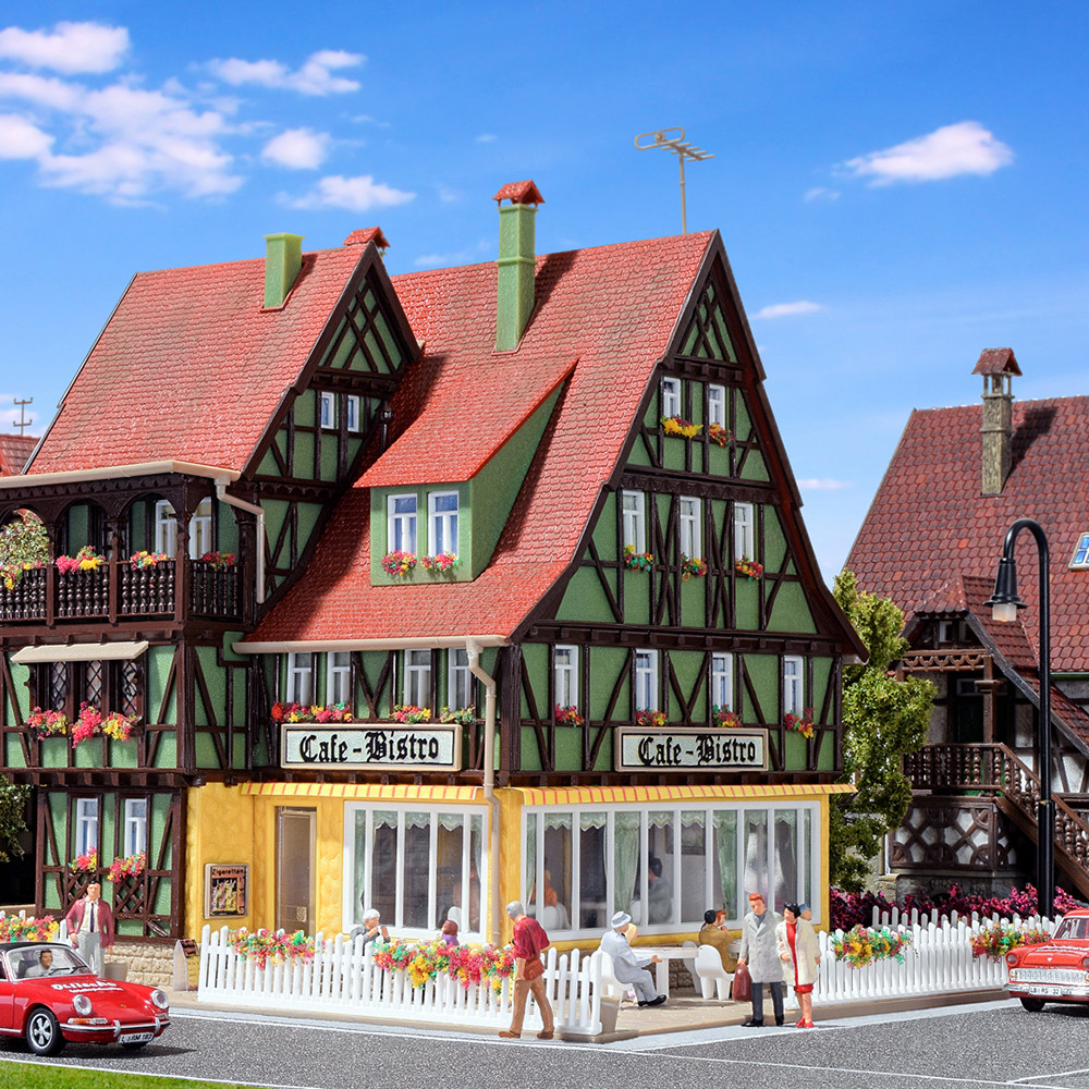 Maquette à l'échelle HO 1/87 d'un Café-Bistro avec éclairage intérieur, pour votre diorama.