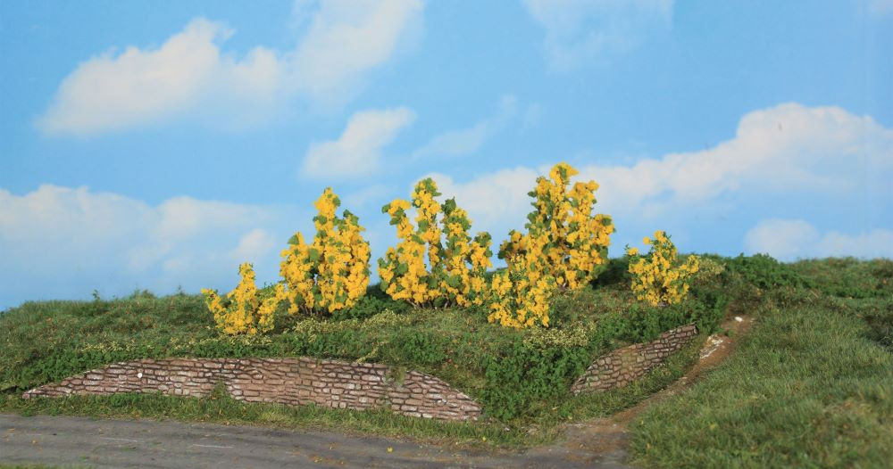 6 buissons de forsythia, de 3 à 6 cm, pour diorama et modélisme.