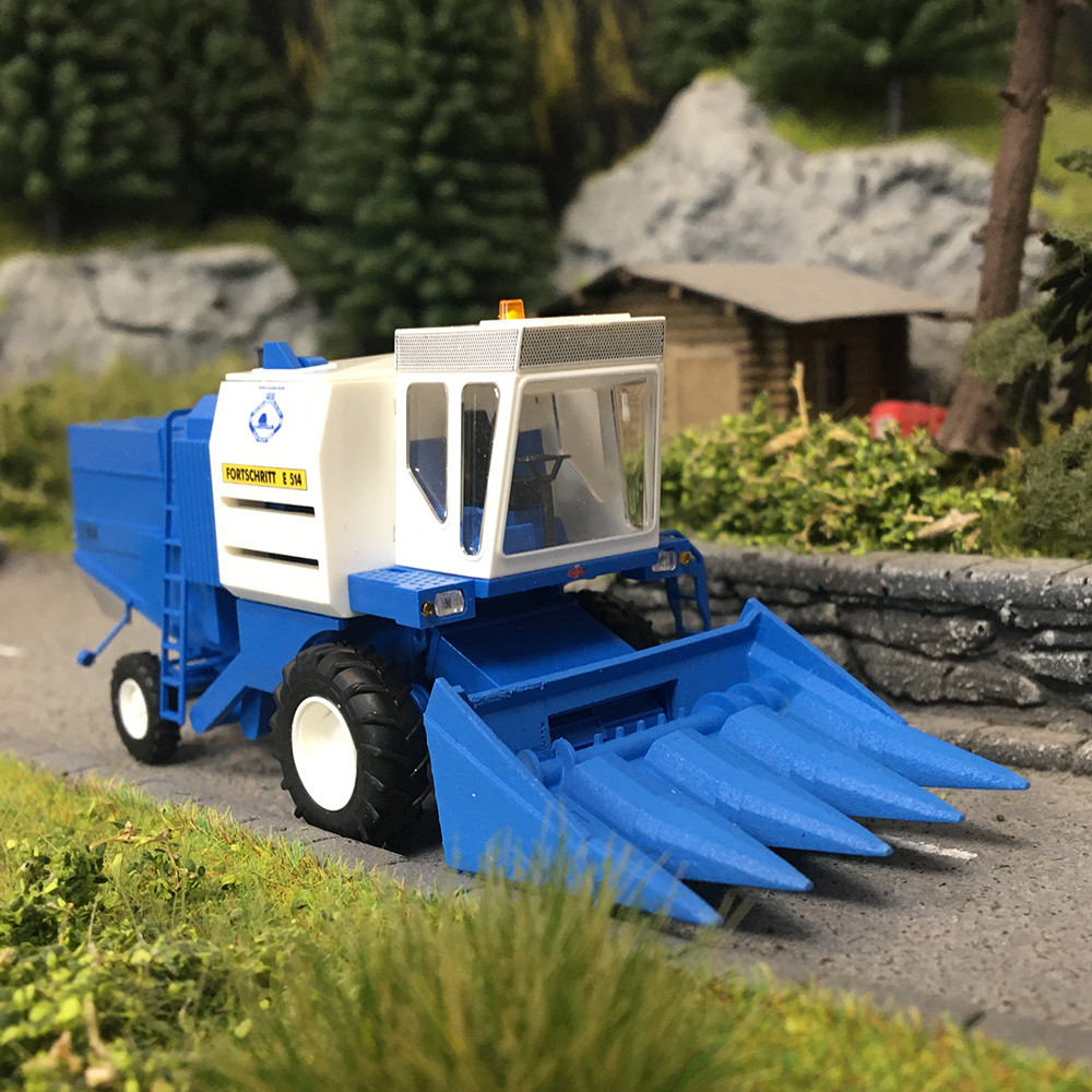 Moissoneuse-batteuse, Fortschritt E514, bleu/blanc, cueilleur à maïs - BUSCH 40184 - HO 1/87