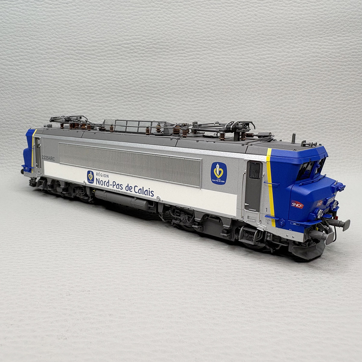 - Modèle réel : La locomotive électrique BB 22254RC issue de la série BB 22200, est utilisée pour le transport de marchandises et de voyageurs sur les lignes du réseau français. Elle arbore la livrée "Nord Pas de Calais" avec couleur bleu et blanche, ainsi qu'un logo Carmillon, typique de cette génération. Dépôt : Lens.