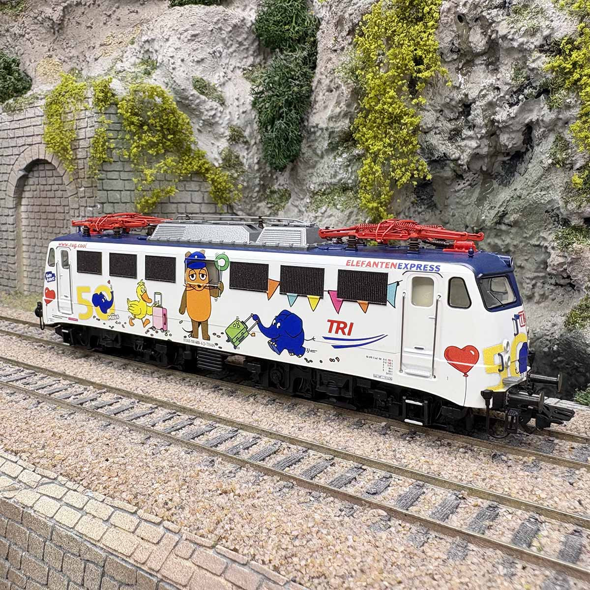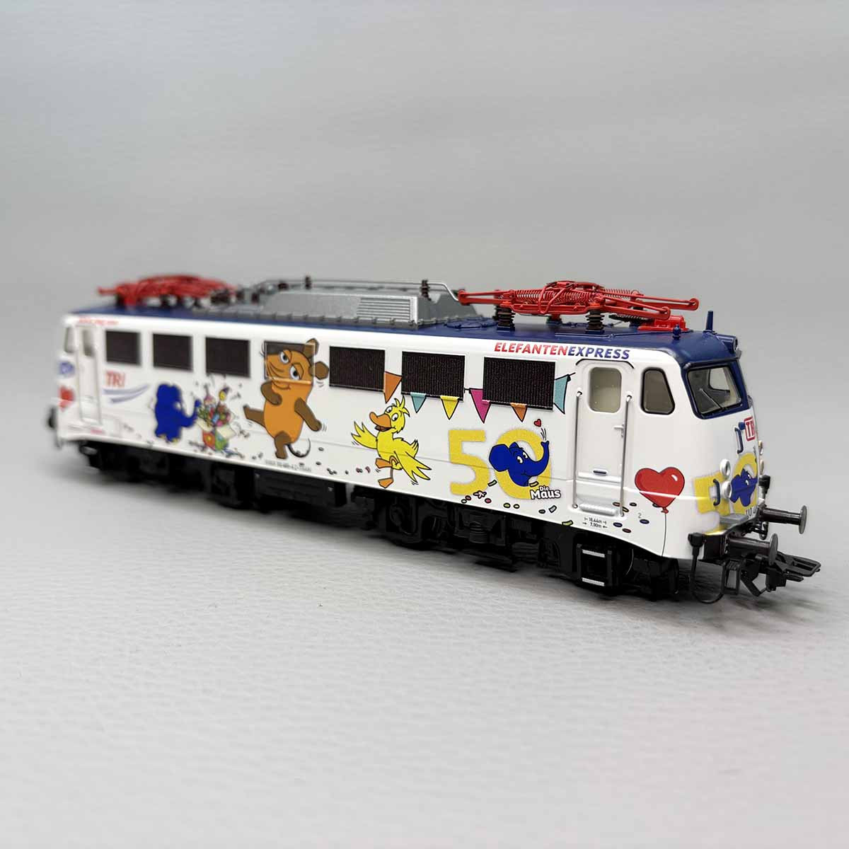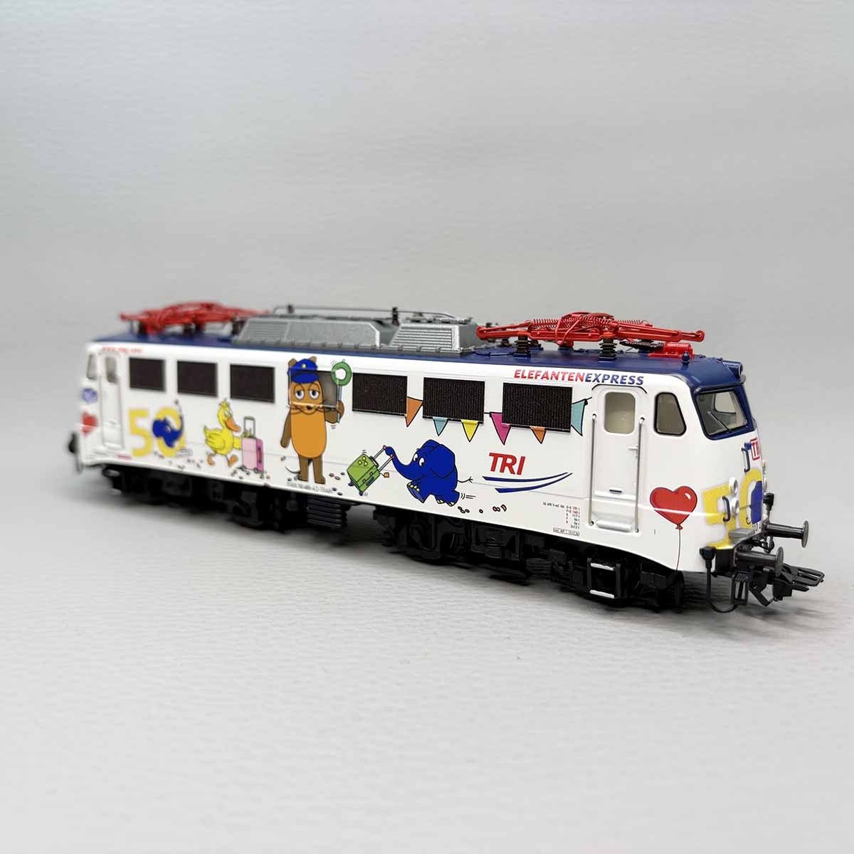 - Modèle réel : La locomotive électrique de série 110 utilisé par la société privé allemande TRI (Train Rental GmbH). Avec une livrée distinctive "Elephant Express". Etat de fonctionnement janvier 2025.
