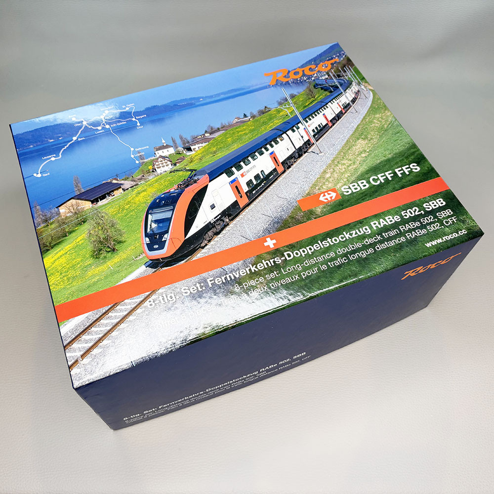 - Modèle réel : Le RABe 502 est un train à deux étages longues distance des CFF qui relient toutes les régions de la Suisse. Depuis 2022, 30 trains IR200 (RABE502), 23 trains IC200 RABDe 502) et 9 trains IR100 (RABe 520) sont en service. De grandes gares sont desservies tels que Genève, Zurich, Saint-Gall et Bâle parmi les destination quotidienne.