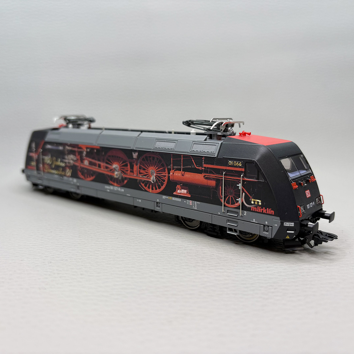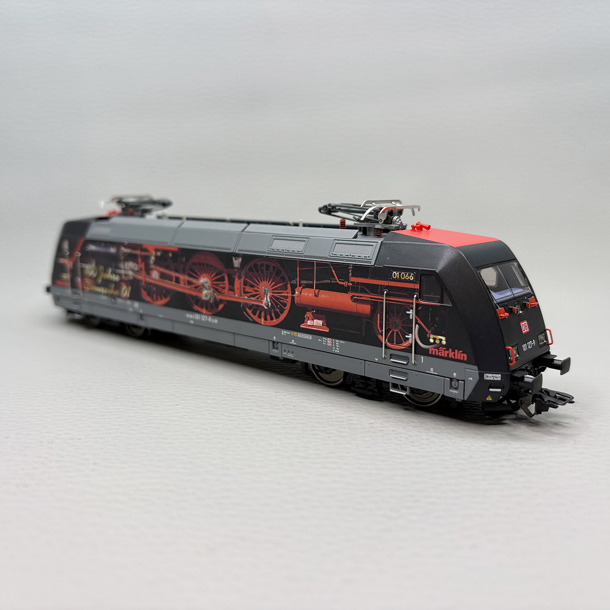 - Modèle réel : Locomotive électrique BR 101 127-9 est utilisée pour le tractage des trains lourd. Immatriculée à la société des chemins de fer de la DB, elle arbore une livrée publicitaire pour les 100 ans de la locomotive BR 01. Bientôt en état de service.