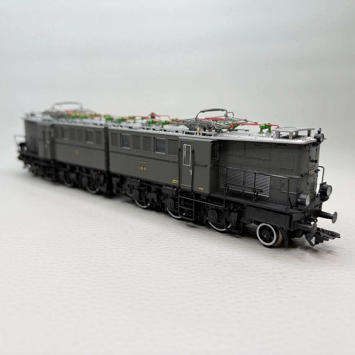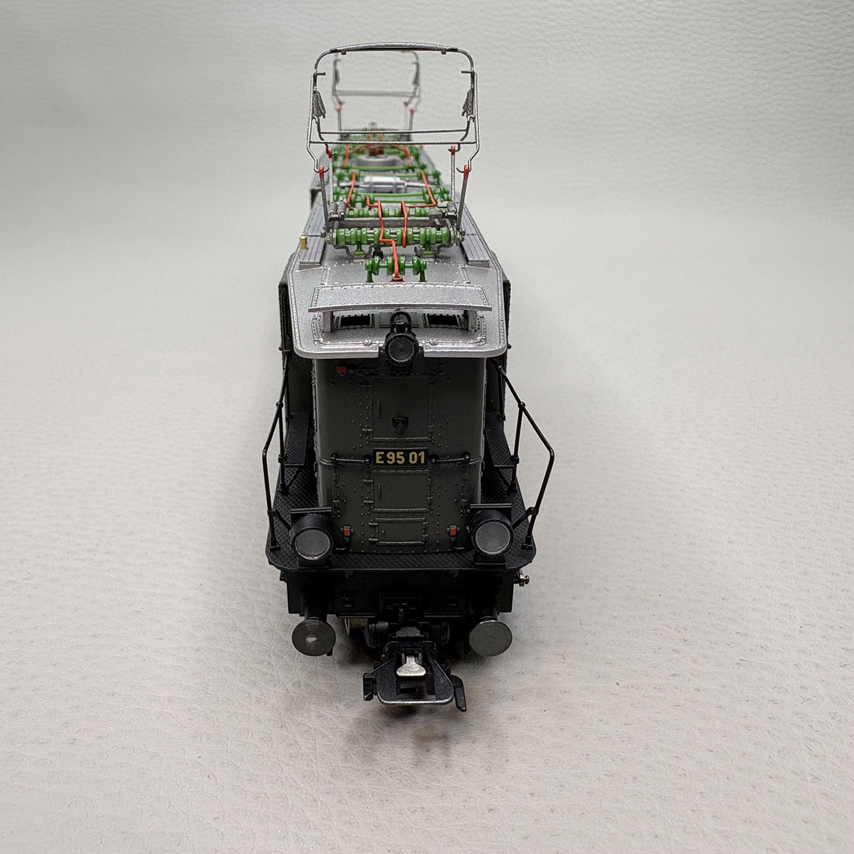 - Modèle réel : La locomotive E95 furent pendant longtemps la plus puissante, la plus grande et la plus chère des locomotive électrique d'Allemagne. Mise en service en 1927, elle servait à tracter les trains de complets de charbons sur le réseau Silésien. Plus de 20 mètres de long, 3200 CV, elle pouvait à elle seule tirer jusqu'à 2200 tonnes de convoi.
