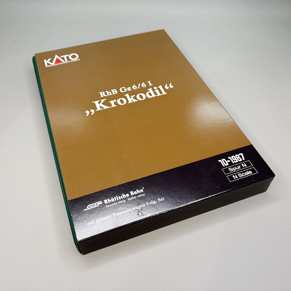 Train de voyageur, locomotive électrique Ge 6/6 I "Krokodil", 4 voitures, RhB, Ep. IV - KATO 10-1987 - N 1/160