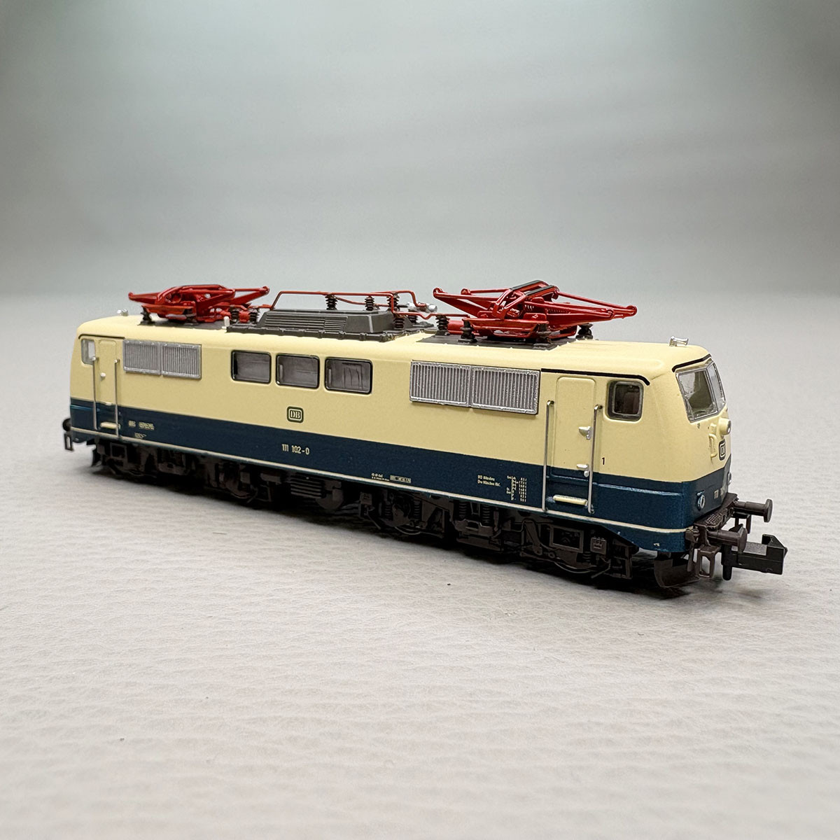 - Modèle réel : Cette locomotive série 111 à été construite à partir de 1974, présentée dans une livrée crème et bleue, elle est utilisée par la société des chemins de fer allemand DB pour les train de voyageurs et marchandises. Etat présentée à l'époque IV.