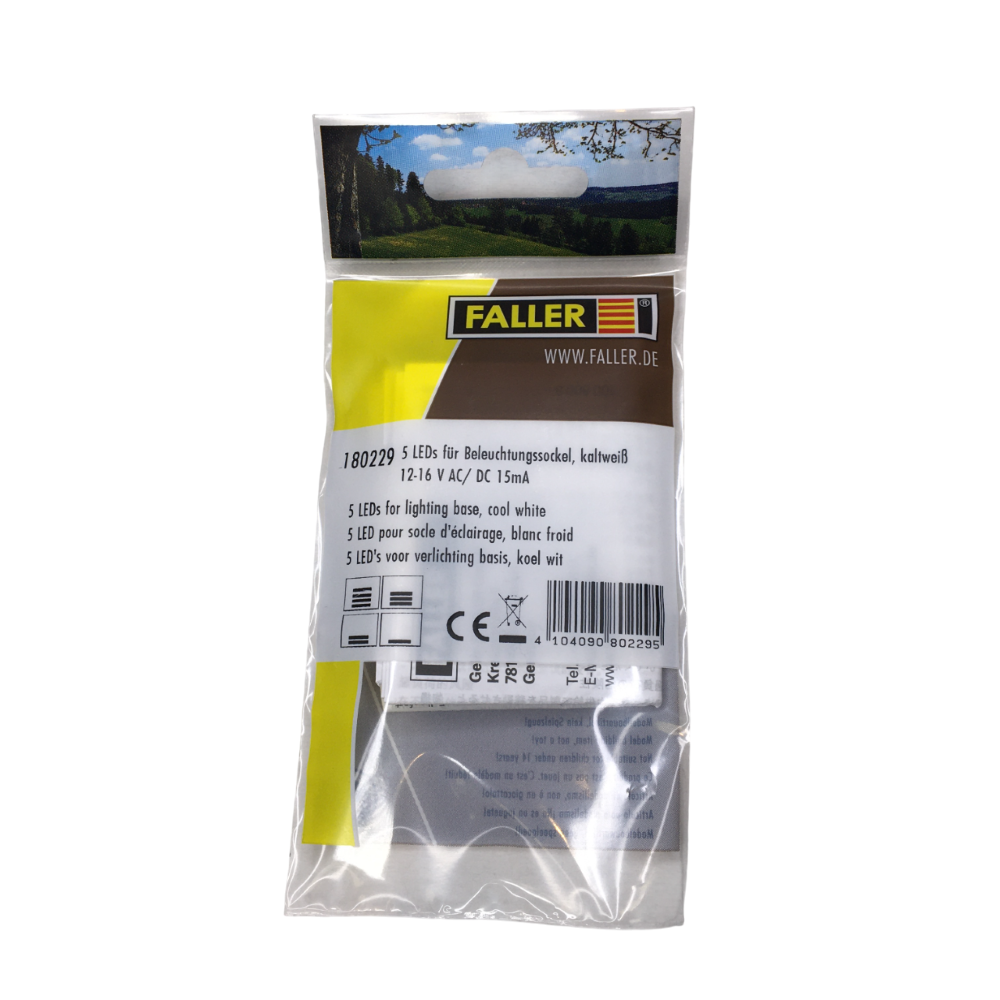 5 ampoules LED pour socle d'éclairage, blanc froid - Faller 180229 - HO 1/87