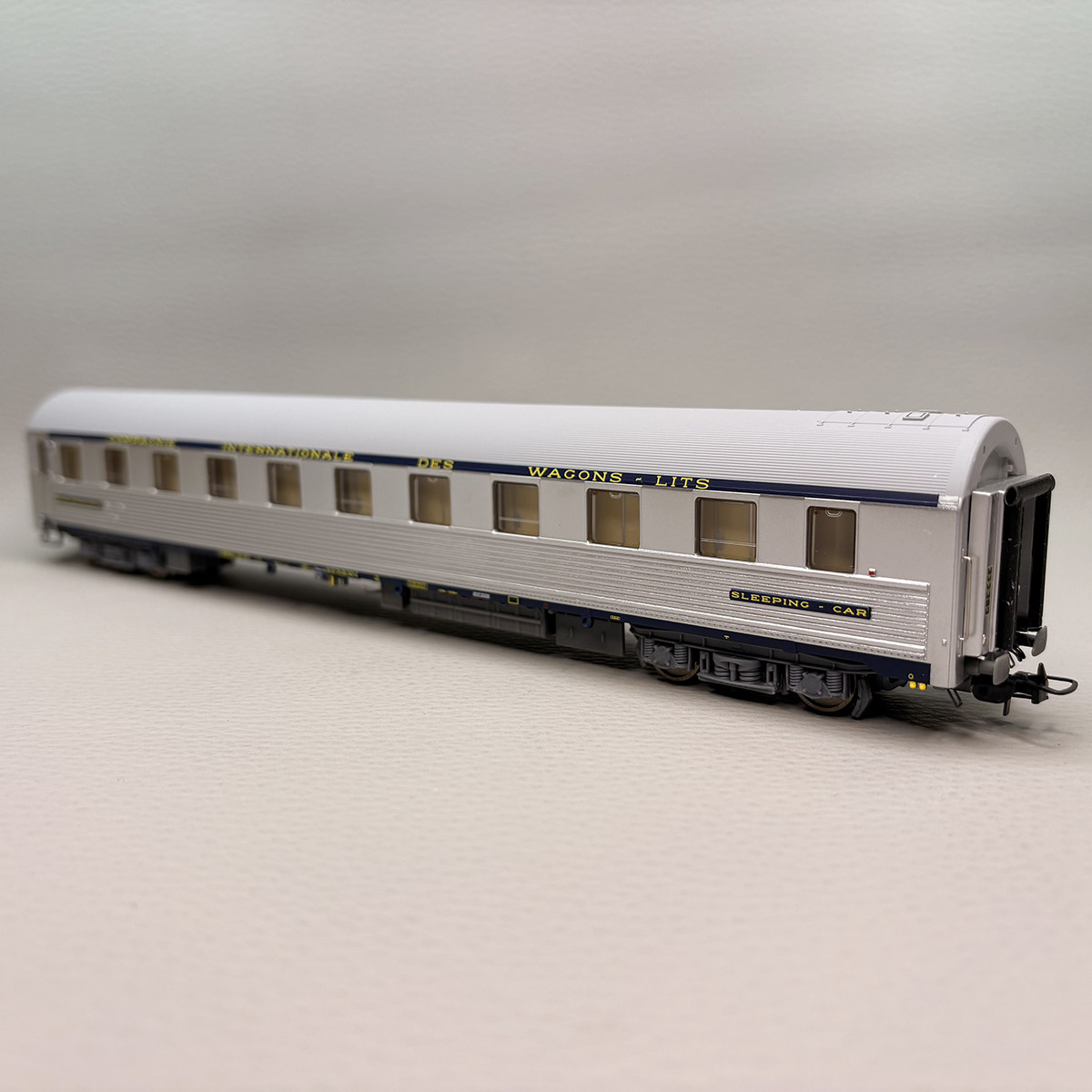 - Modèle réel : Voiture lits de type P version Inox des CIWL qui était mise en gérance à la SNCF. Version d'origine avec bandeau bleu foncé CIWL et bourrelets.