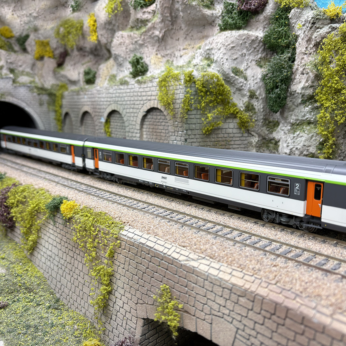 - Modèle réduit : Ces voitures à l'échelle H0 sont fidèlement reproduites et détaillées des chemins de fer SNCF. Conçue pour le système à courant continu 2 rails DC. Avec aménagement intérieur et éclairage intérieur de série. Attelage boucle NEM.