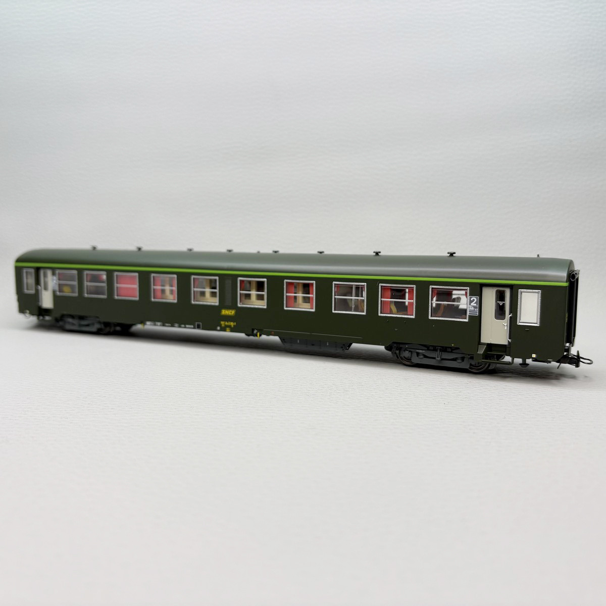 - Modèle réduit : Ces voitures à l'échelle H0 sont fidèlement reproduites et détaillées des chemins de fer SNCF. Conçue pour le système à courant continu 2 rails DC. Avec aménagement intérieur et éclairage intérieur de série compatible digital et analogique avec interrupteur. Possibilité de la digitaliser à l'aide d'un décodeur NEM651 6 broches. Attelage boucle NEM.