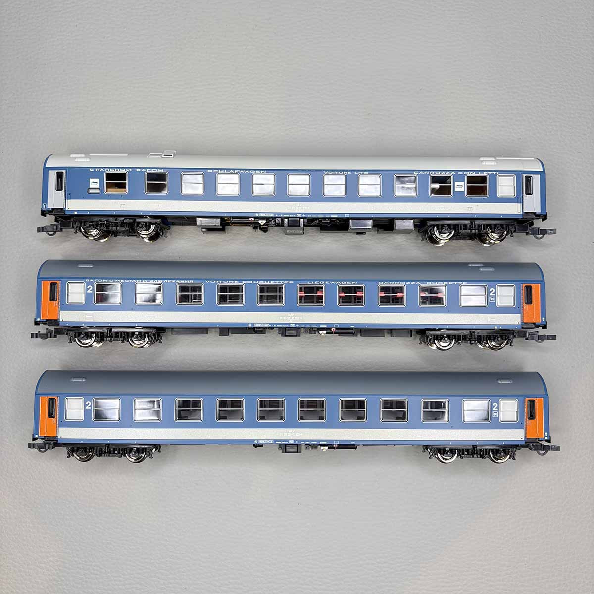 - Modèle réel : Les rames IEx 74/75 de la Hongrie et D 374/375 de Vindobon ont circulé de 1986 à 198 entre Berlin-Lichtenberg et Prague. Les voitures présentées reproduisent un train de l'année horaire de 1987/1988.
