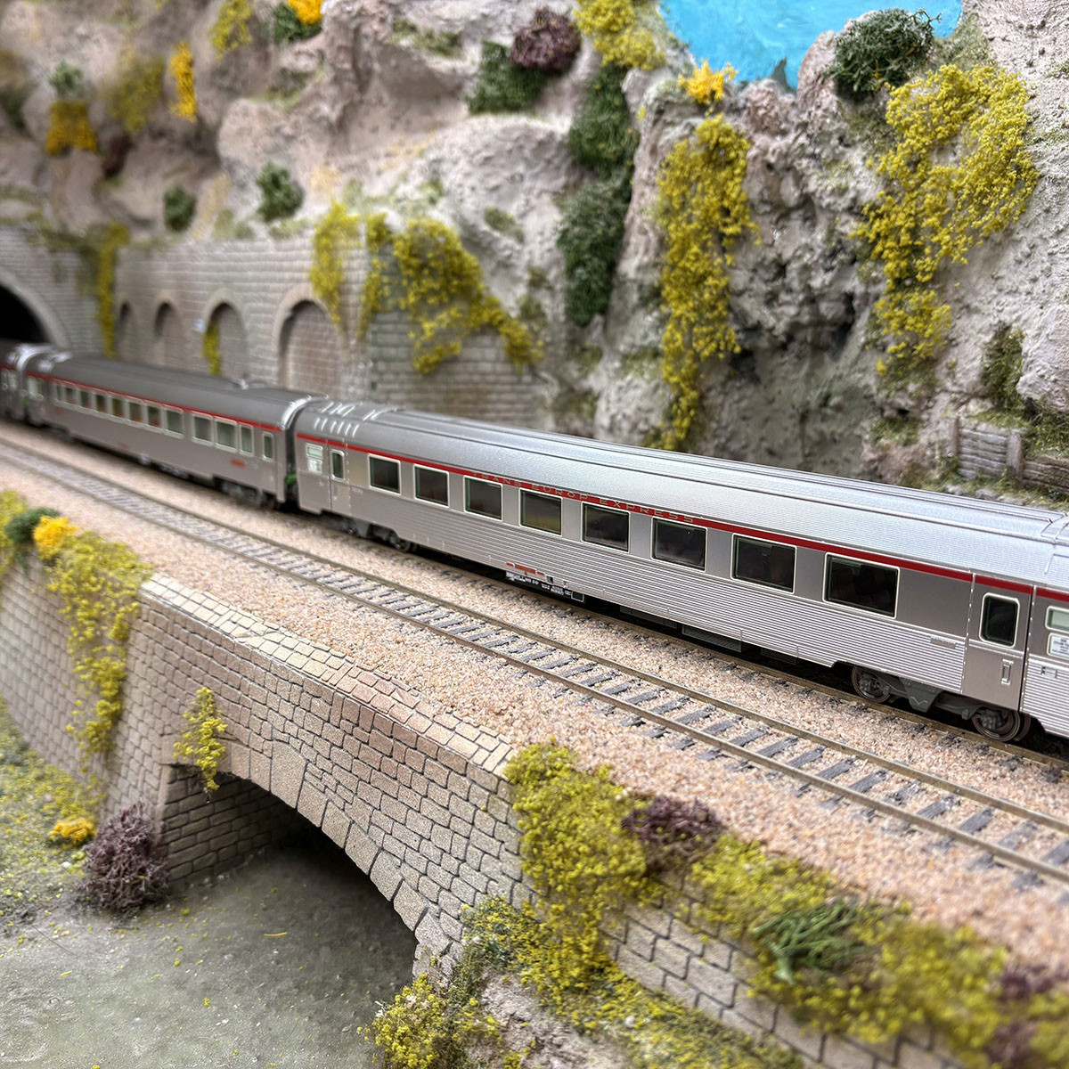 4 voitures Inox, TEE Mistral, "Jules vernes", restaurant / bar, SNCF, Ep. IV, éclairage - JOUEF HJ4205 - HO 1/87