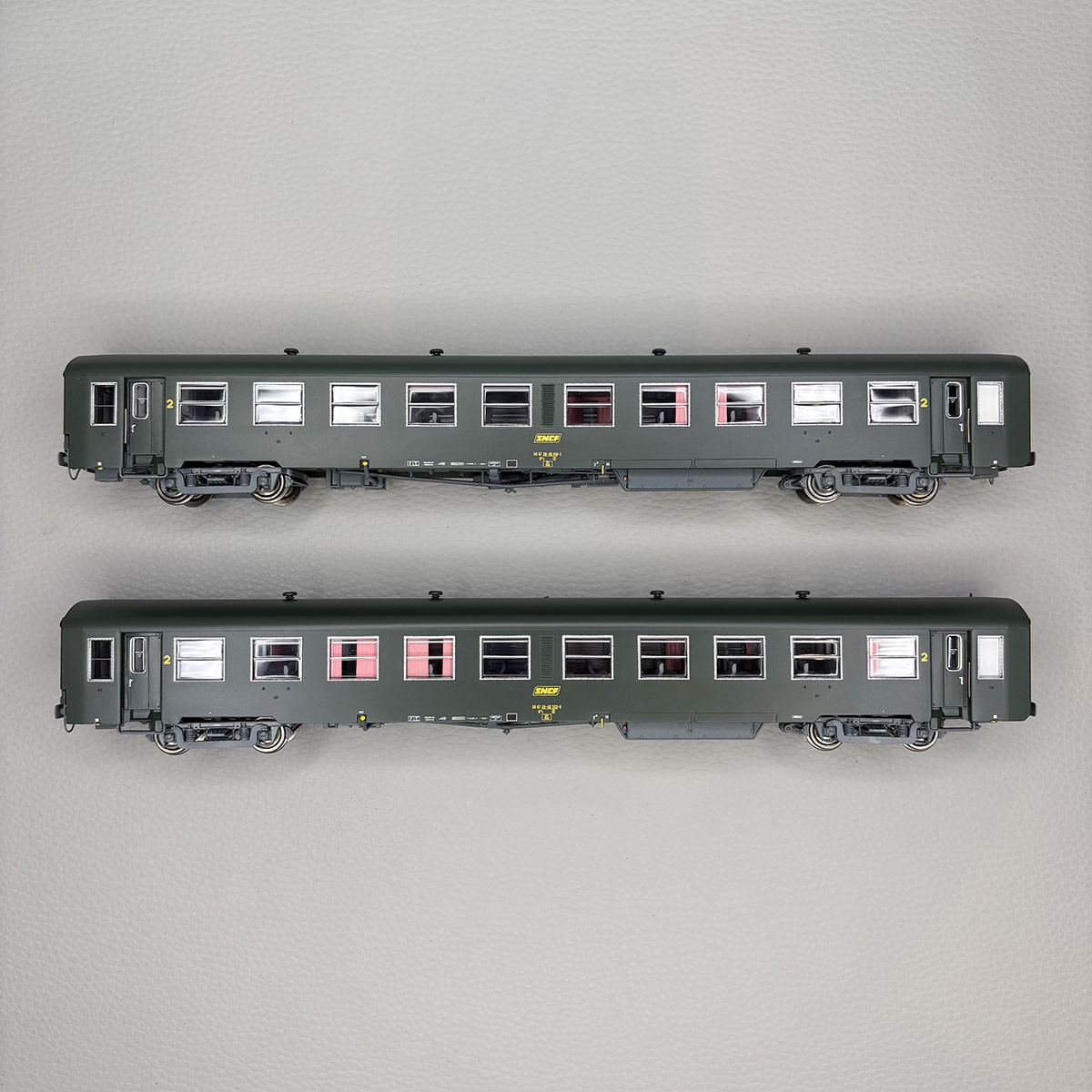 2 voitures USI, B10t U61, 2CL, caisse longue, logo Encadré jaune, SNCF