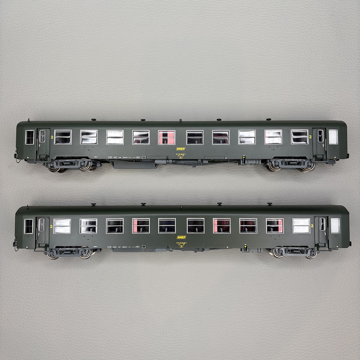 2 voitures USI, B10t U61, 2CL, caisse longue, logo Encadré jaune, SNCF, Ep. IVa, éclairage - LSMODELS MW40032 - HO 1/87