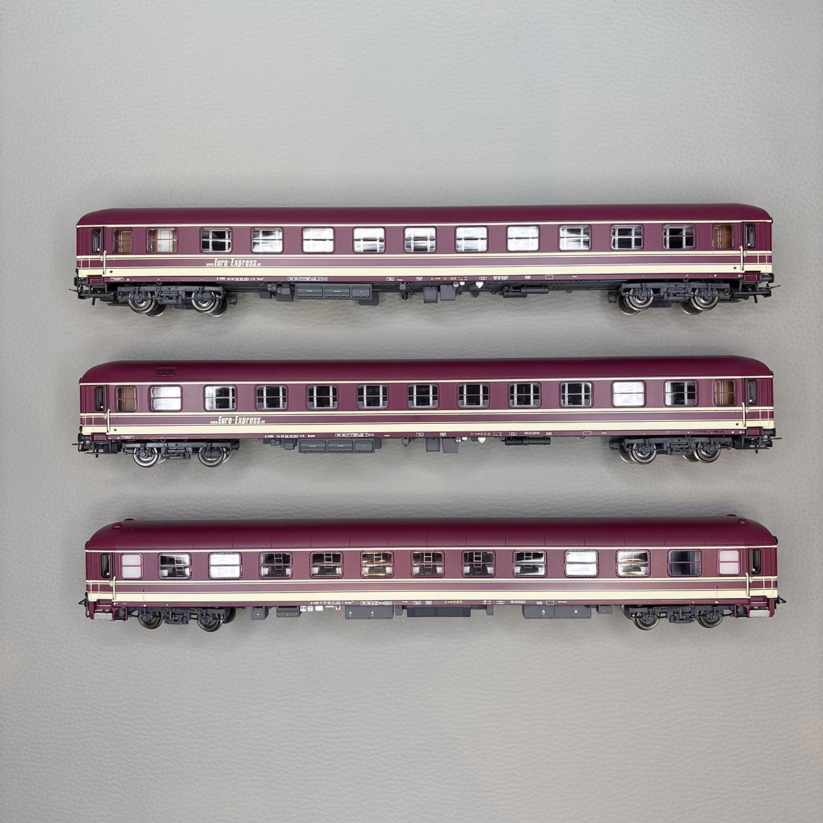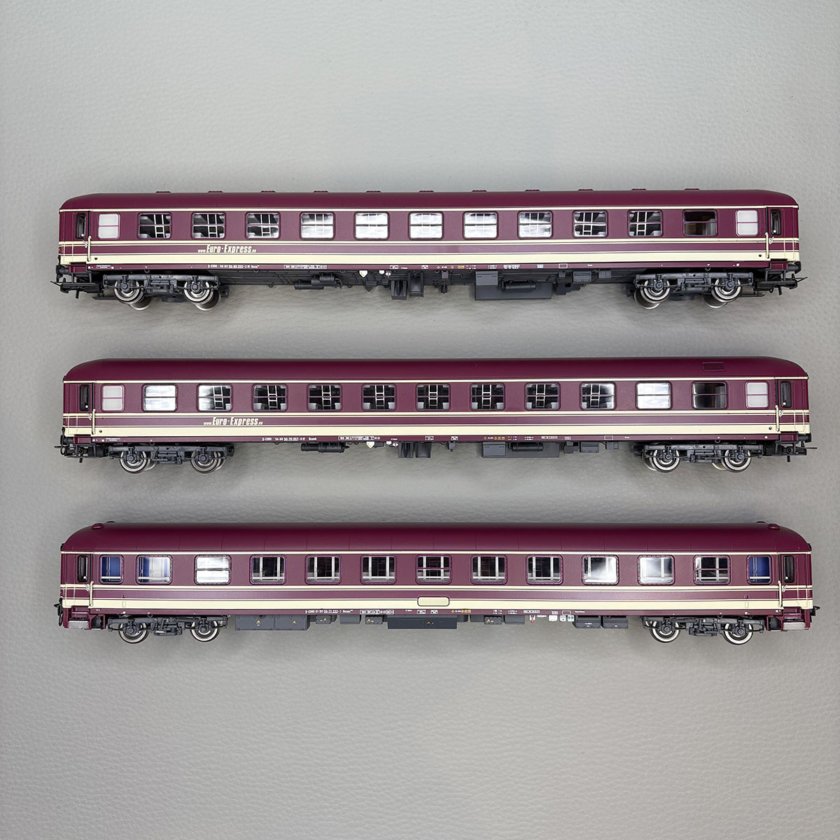 - Modèle réel : Ces voitures couchettes de type Bcm et Bvcmz étaient utilisées dans les trains de nuit Euro-Express qui traversaient plusieurs pays européens. Ces voitures voyageurs étaient utilisées par les chemins de fer allemand DB.