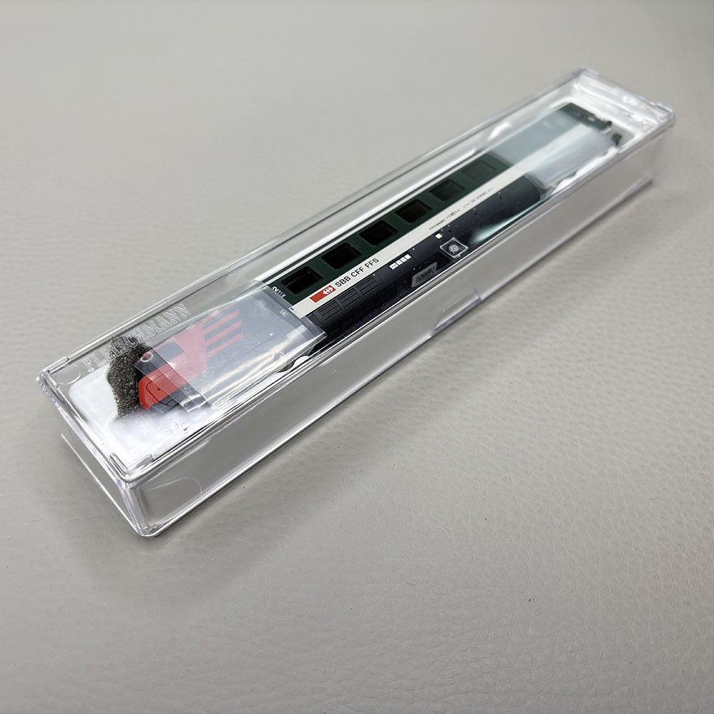 - Modèle réduit : Cette voiture à l'échelle N de la SBB CFF, est reproduite fidèlement. Elle circule à l'époque V. Conçue pour le système à courant continu 2 rails, DC. Avec aménagement intérieur. Equipée d'un décodeur de fonction, compatible analogique et digital.