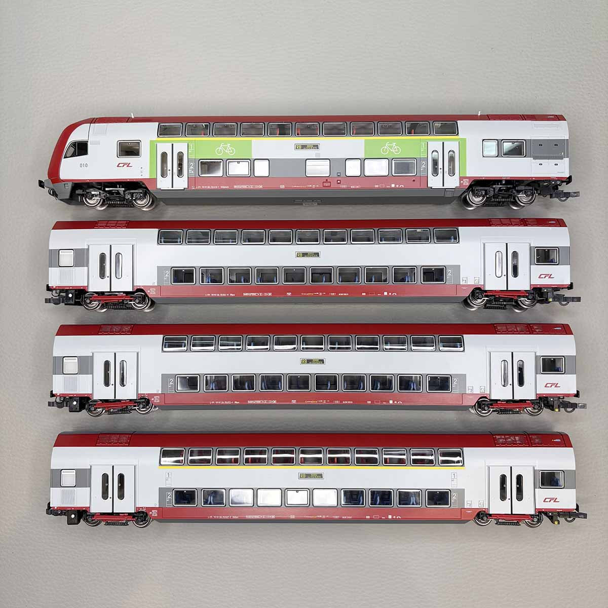 4 voitures à 2 niveaux de type DB / DAB, avec éclairage, CFL