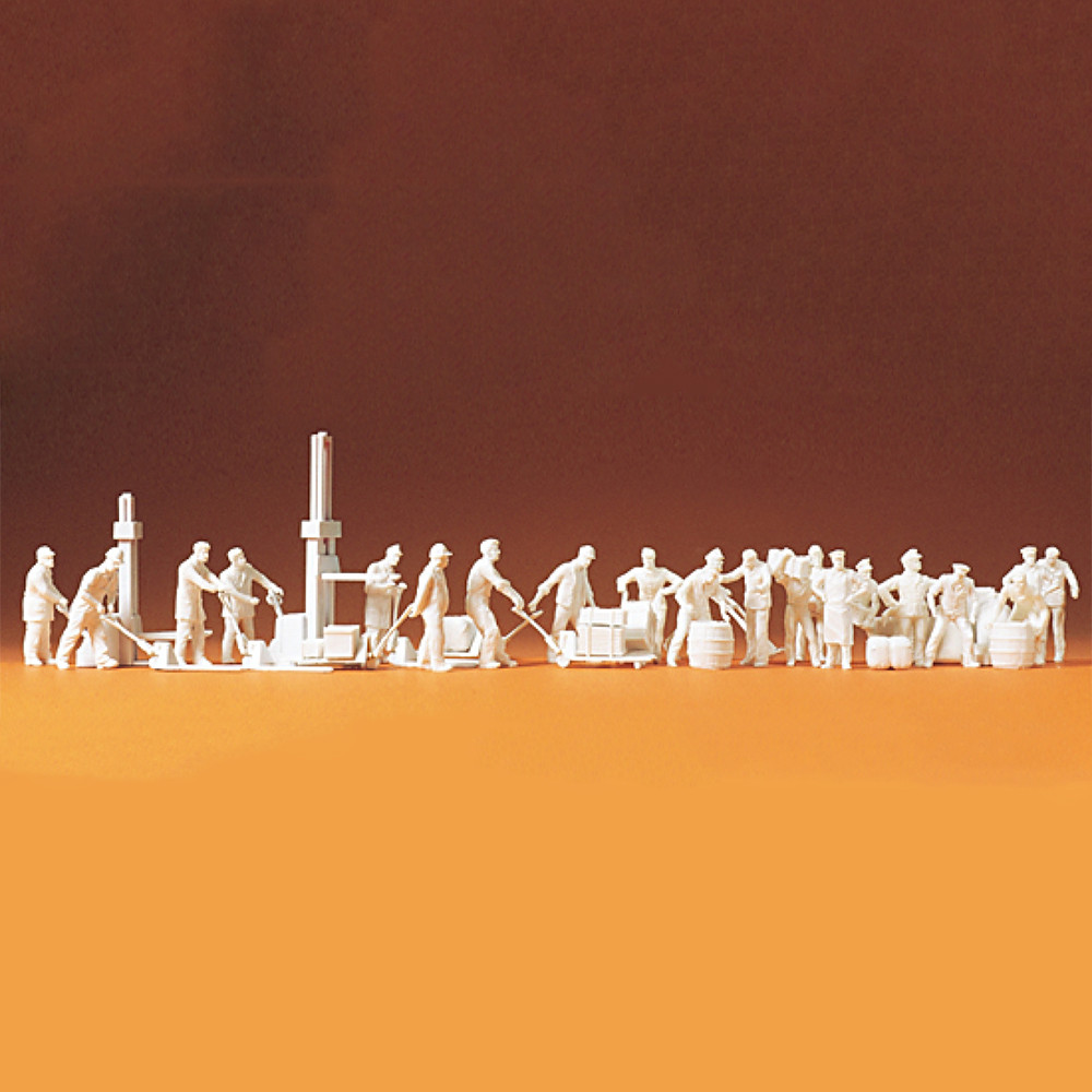 Équipe de fret, personnages et accessoires, non peintes - PREISER 16348 - HO 1/87