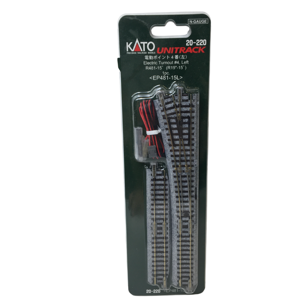 Aiguillage droit, tourne à gauche, électrique, 15°, R481, R19 - KATO 20-220 - N 1/160