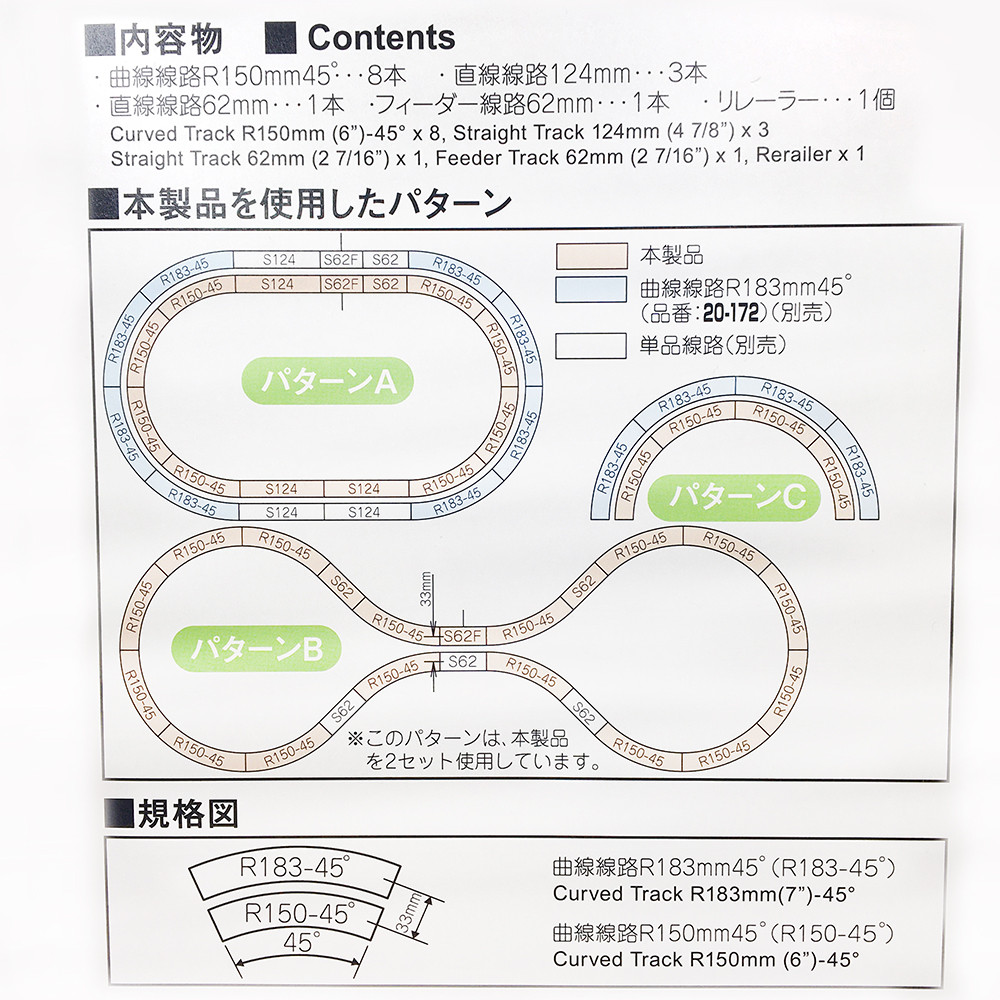 KATO propose un excellent système de rails à l'échelle N avec une plateforme grise mouchetée (grain fin), parfaitement dimensionnée, extrêmement stable et idéale pour tous les modèles à l'échelle N. La plateforme est en plastique élastique et mesure environ 25 mm de large. Les rails se connectent facilement grâce à des connecteurs enfichables et s'enclenchent avec un clic audible. Les patins métalliques sont soutenus par des connecteurs en plastique supplémentaires situés sur leur face inférieure. Cela les protège tout en garantissant une connexion parfaite, précise et fiable.