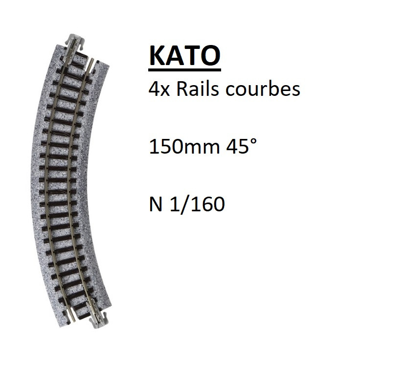 4 rails courbes, R 150-45°, Unitrack - KATO 20-174 - N 1/160