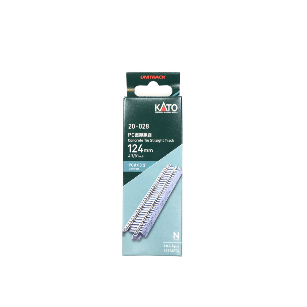 4 rails droits 124 mm, traverses en béton - KATO 20-028 - N 1/160