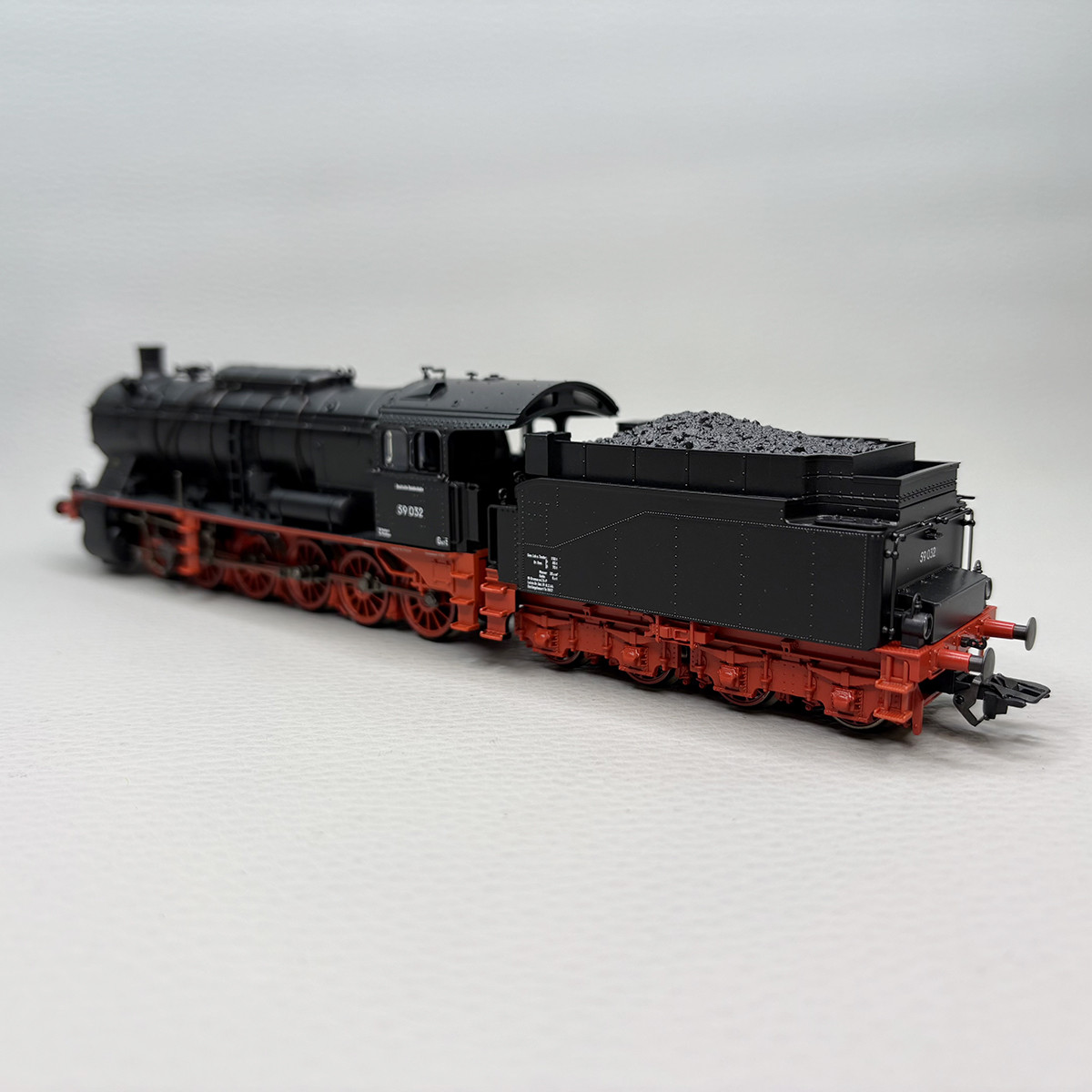 - Modèle réel : La locomotive de type BR 59 032 dite lourde pour pouvoir tirer des trains de marchandises. Avec tender charbon de 2T20, Machine affecté à la DB Stuttgart dépôt de de Plochingen. Etat de fonctionnement vers 1949.