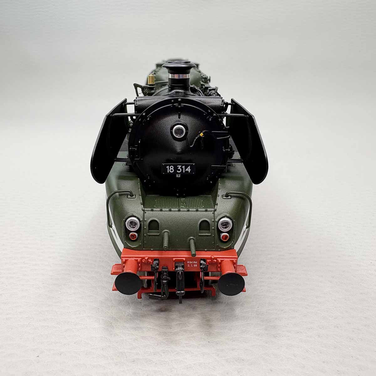 - Modèle réel : La locomotive à vapeur BR 18 314 utilisée pour les trains rapide, présenté dans sa version fioul peinte en verte en tant que locomotive d'essai de la VES-M Halle. Surnommée "Schorsch", mise en service en 1919 sous la compagnie DR, et reprise par la DRG. Après la seconde guerre mondiale, elle a atterrit en zone soviétique comme locomotive d'essai. La version présentée et celle de 1968.