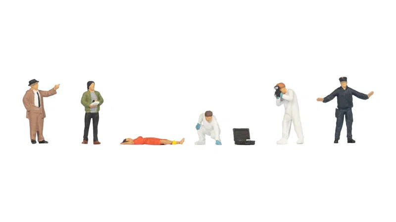 6 figurines et 1 accessoire, peints à la main. Modélisme ferroviaire et diorama.