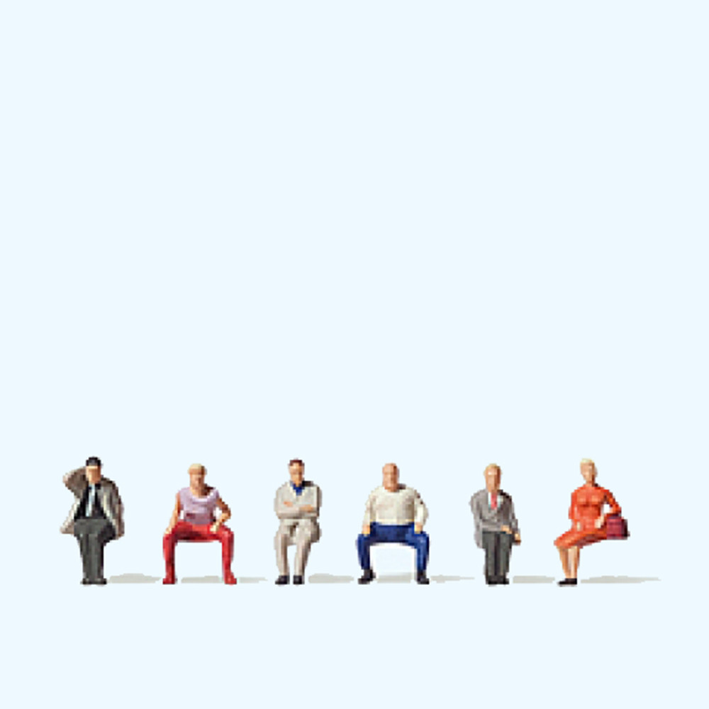 6 figurines de Passagers assis, peintes à la main pour modélisme ferroviaire.