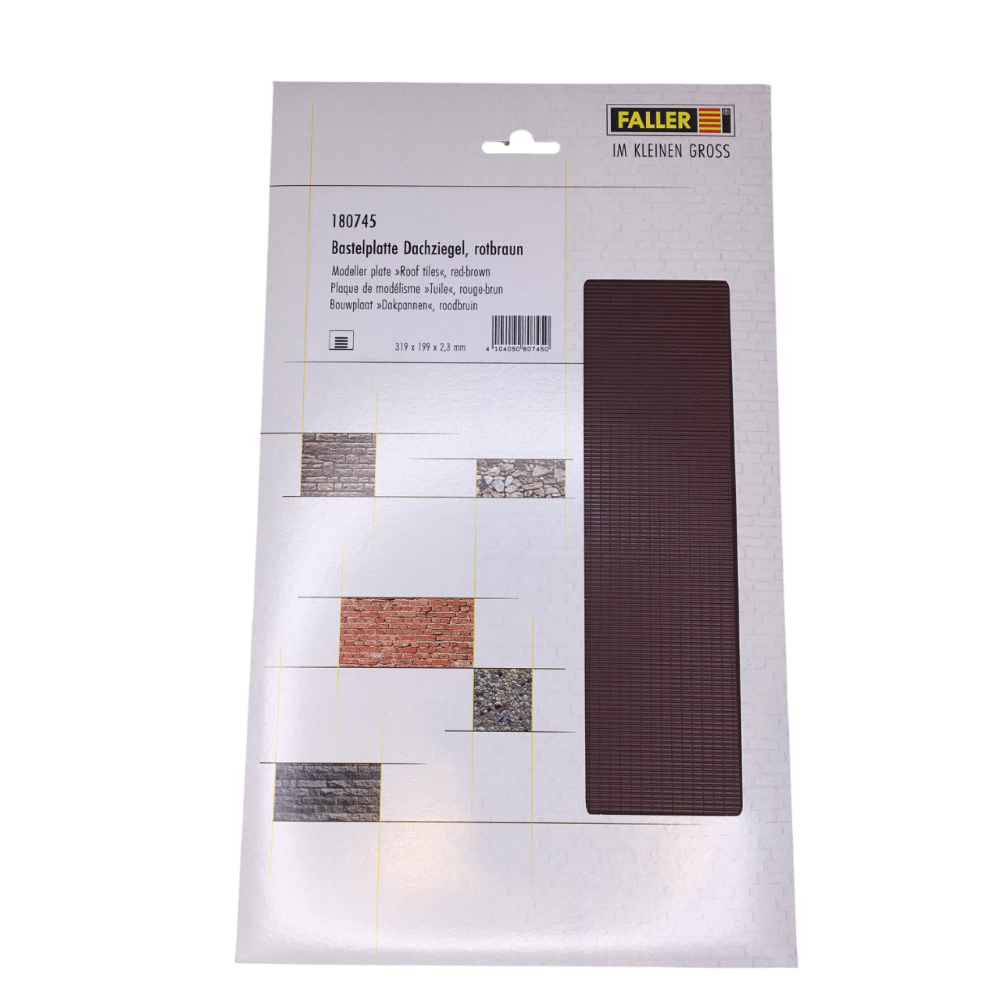 Plaque plastique de tuiles mécaniques, rouge-brun, 319 x 199 mm - Faller 180745 - HO 1/87