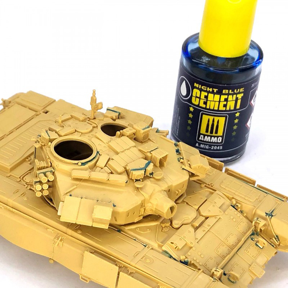 Colle extra fine bleu nuit, pour plastique et polystyrène de chez Ammo 2045.
