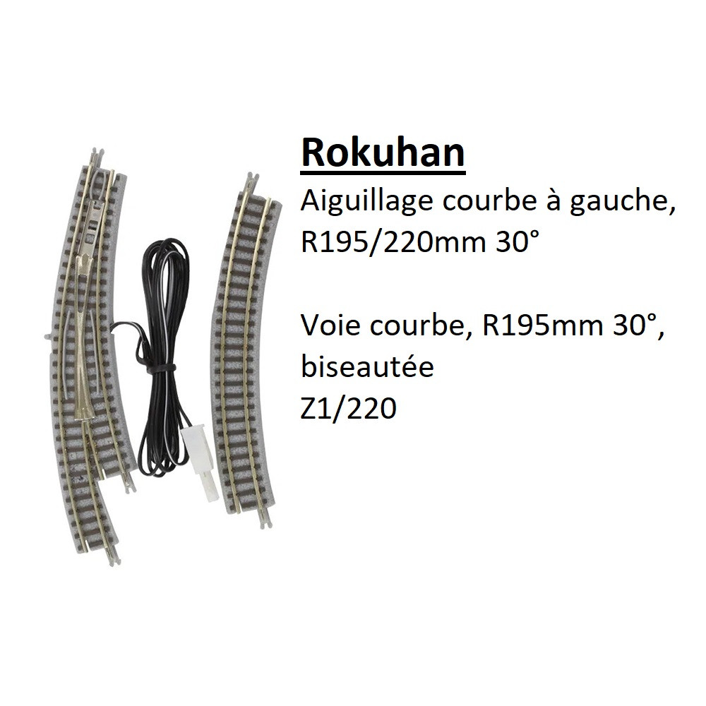 Aiguillage courbe à gauche, R 195/220-30°, voie courbe, R195-30°, biseautée - ROKUHAN R026 - Z 1/220