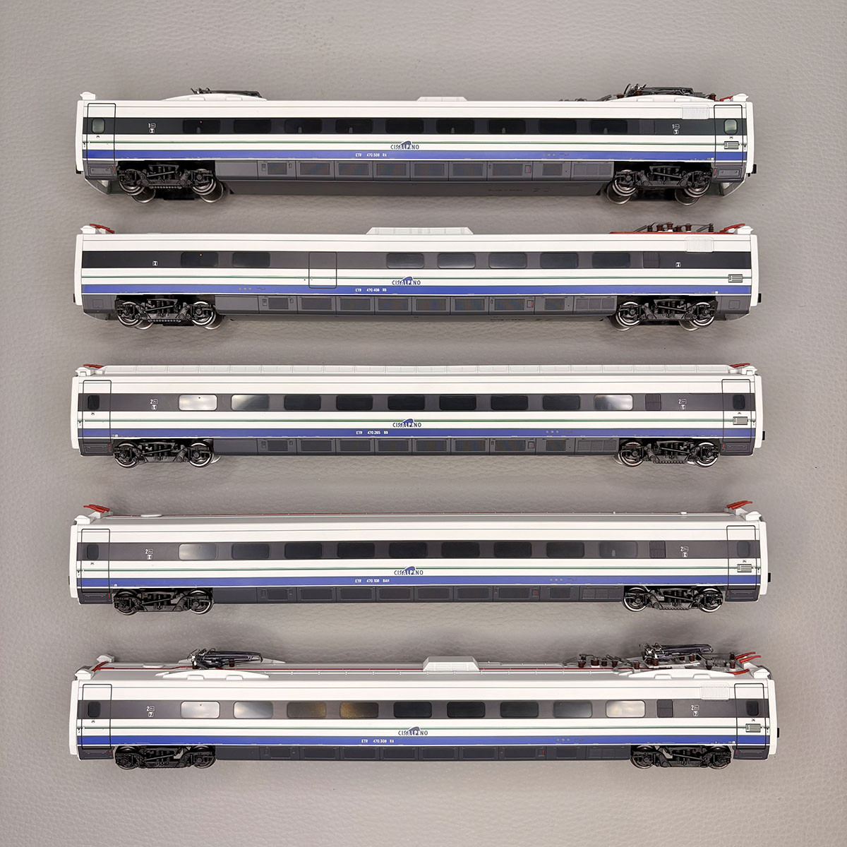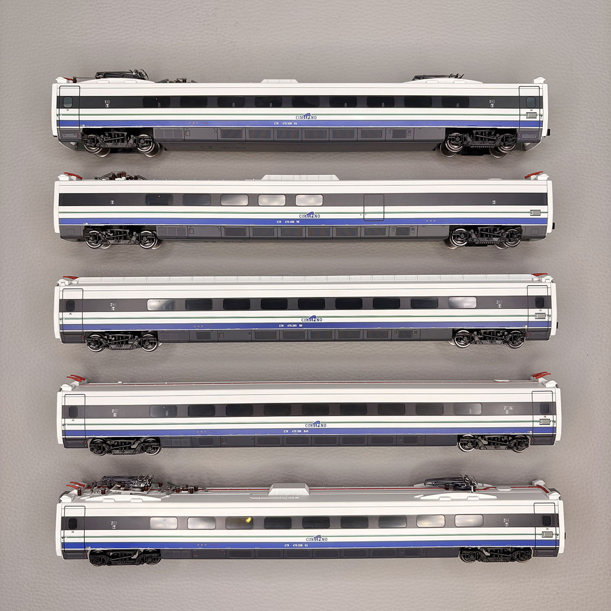 - Modèle réel : Mise en service en 1996, le train à grande vitesse ETR 470, dérivé de l'ETR 460, construit à 9 exemplaires spécifiquement pour la livrée Cisalpino. Il desservait l'Allemagne, la Suisse et l'Italie jusqu'en 2006. Au delà, l'Allemagne ne fut plus desservi, et en 2015, il circula que sur l'Italie. Vitesse maximum est de 200km/h.