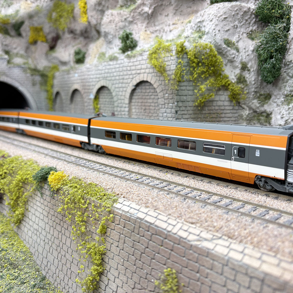 - Modèle réduit : Ce complément TGV à l'échelle H0 de la SNCF, reproduit fidèlement l'époque IV. Conçue pour le système à courant continu 2 rails DC, elle fonctionne sur un rayon minimum de 360 mm. Tampon fixe.