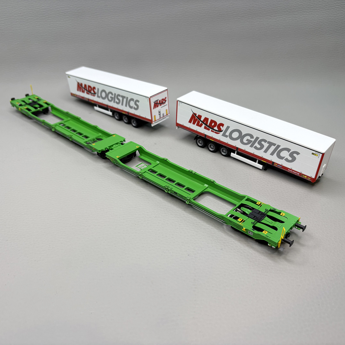 - Modèle réduit : Ce set à l'échelle H0, de CFL Cargo reproduit fidèlement l'époque VI. Il est composé d'un wagon plat articulé et de 2 semi-remorques à bâches de la société de MarsLogistics. Conçu pour le système à courant 2 rails, les deux moitiés du wagon plat sont en métal et montées de manière mobile sur le bogie central.