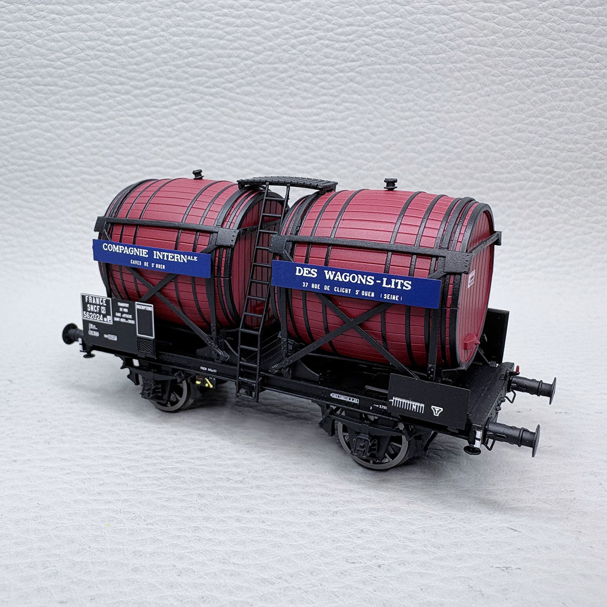 Modèle réel : Le wagon monofoudre ou bifoudre, antérieur au wagon citerne, a été créé pour le transport du vin. Il pouvait contenir de 50 à 80 Hectolitres de vin. utilisé à la fin du 19ème siècle, il devient très populaire et répandu début du 20ème siècle. De nombreuses compagnies les ont utilisés dont la SNCF.