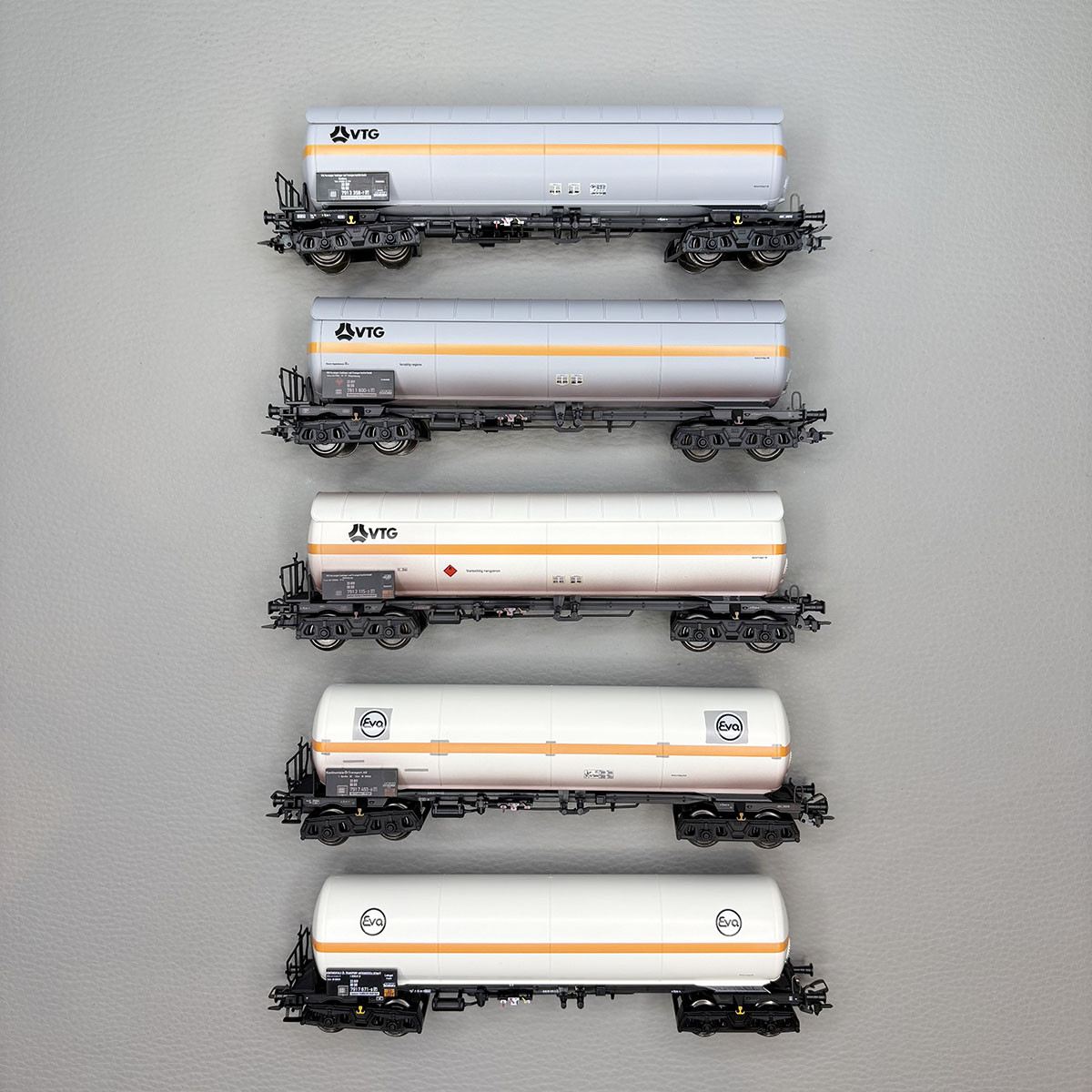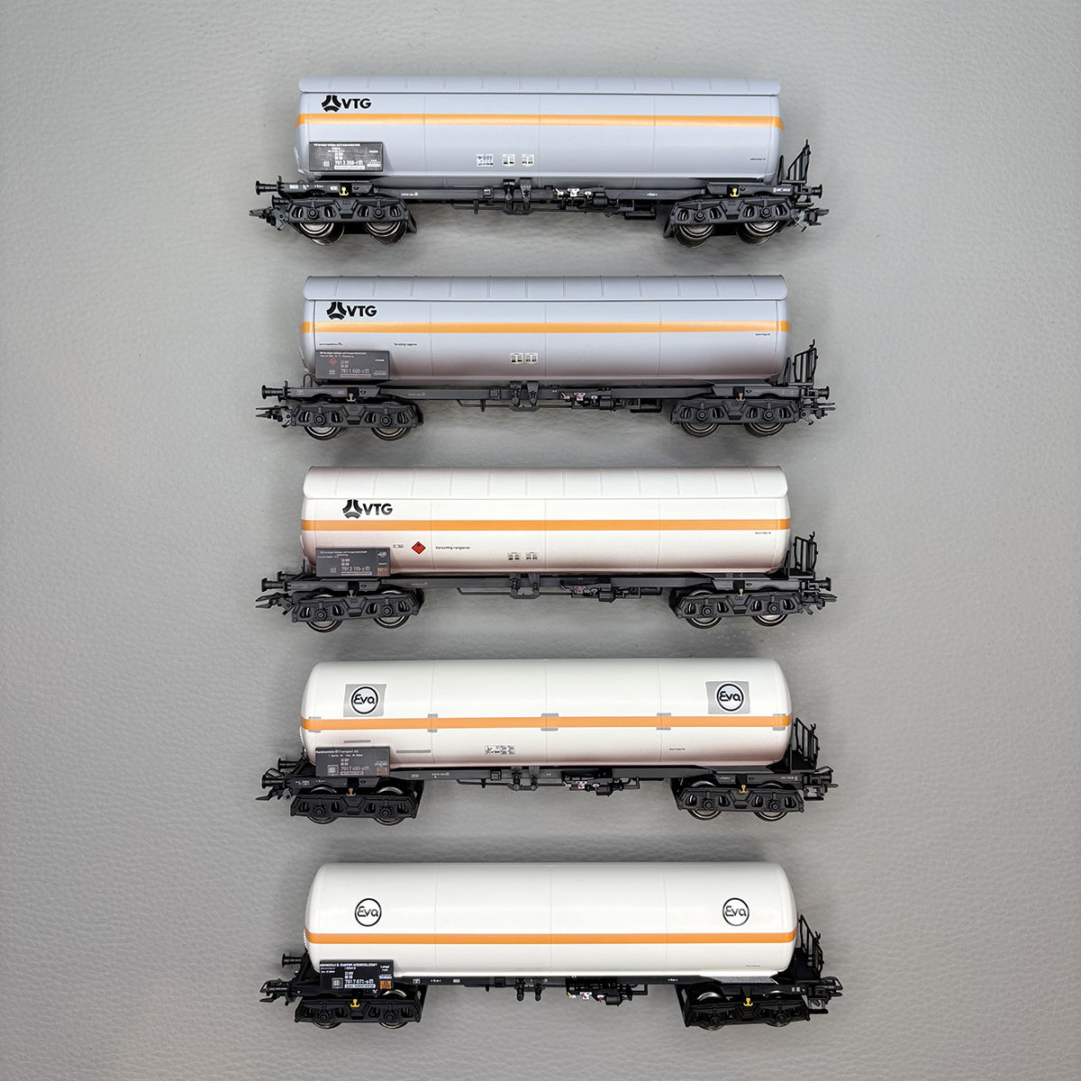 5 wagons citernes transport de gaz sous pression, VTG / EVA, Ep. IV - MARKLIN 48480 - HO 1/87