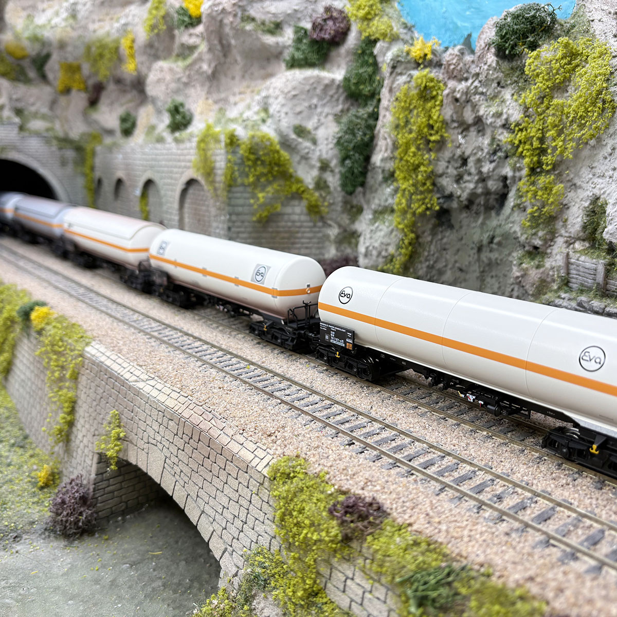 - Modèle réel : Wagon citerne à bogie pour le transport de gaz sous pression, avec ou sans pare soleil de protection. Utilisé par de nombreuses compagnies ferroviaires.