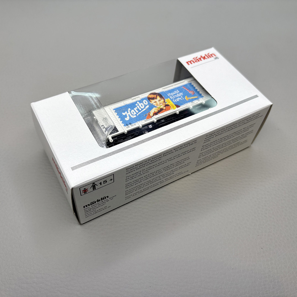 - Modèle réel : Wagon couvert marchandise de type Gms 30 appartenant à la société allemande Haribo GmbH & Co.KG. Ce wagon est immatriculé à la DB.