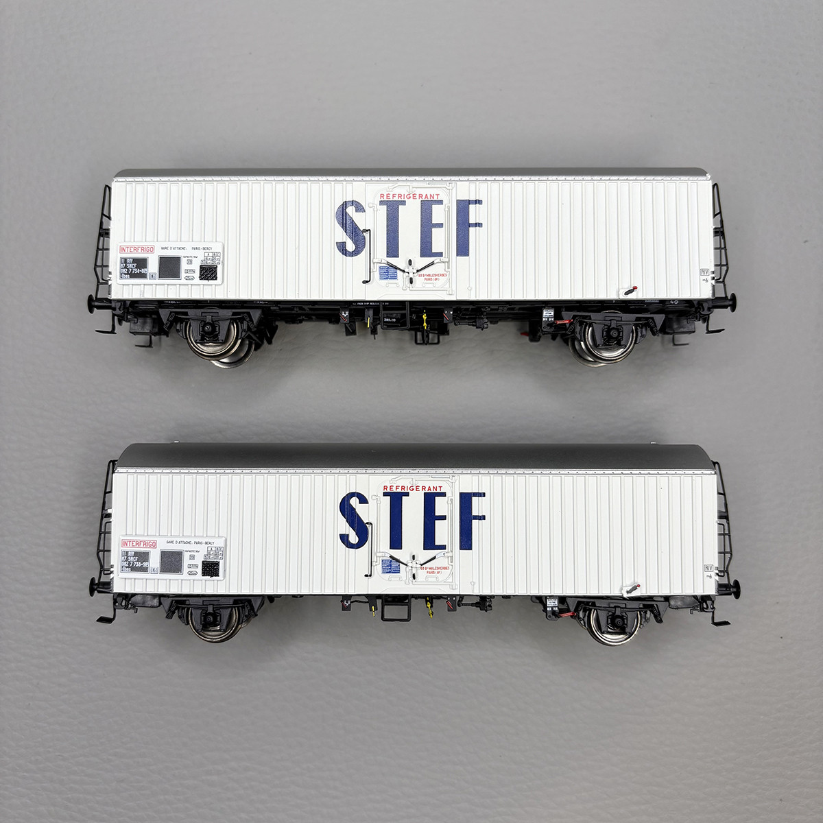 2 wagons frigorifiques type Ibes, logo STEF bleu, marquage UIC, SNCF, Ep. IV - LSMODELS 30236 - HO 1/87