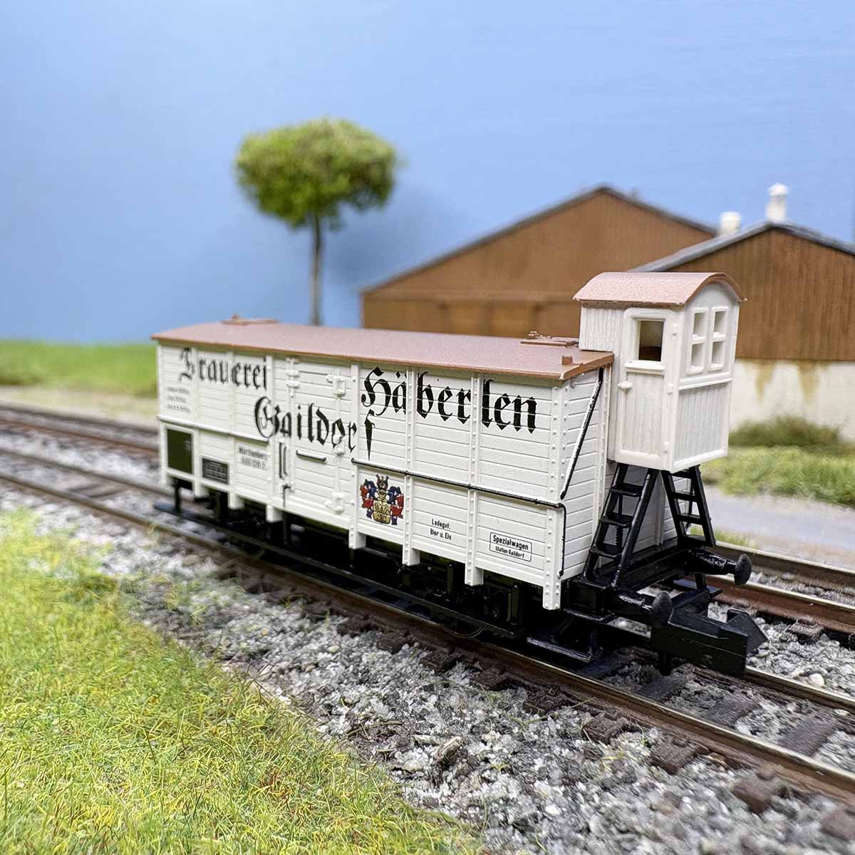 - Modèle réel : Wagon deux essieux isotherme de type G02, servant pour le transport de la bière à l'époque I. Utilisé par la société allemande KWSr.E.. Décoration de la brasserie "Häberlen" située à Gaildorf.