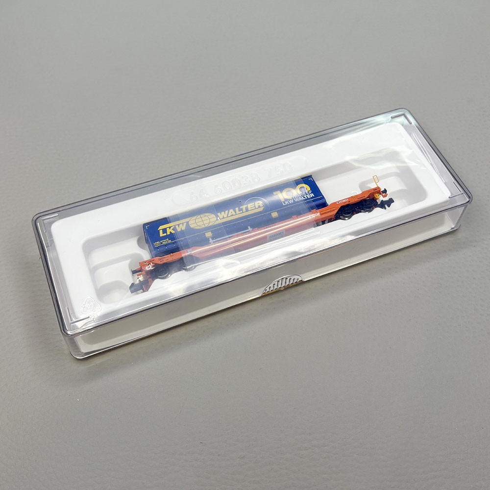 - Modèle réduit : Ce wagon à l'échelle N de la Société Wascosa, est reproduit fidèlement. Il a circulé à l'époque VI. chargée de semi "LKW Walter" amovible. Conçue pour le système à courant continu 2 rails, DC.