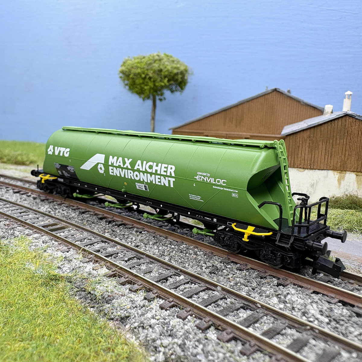 - Modèle réel : Ce wagon silo de type Uacs est utilisé par la société privée VTG immatriculée en Allemagne, pour le transport de fine particules tels que la poussières.