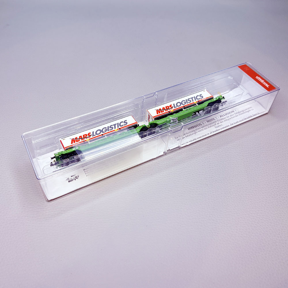 - Modèle réel : Wagon poche, porte conteneur de type Sggmrss "T3000e" utilisé par la société CFL Cargo pour le transport de marchandises par conteneur ou semi. Equipée avec deux semis de chez "Mars Logisticks".