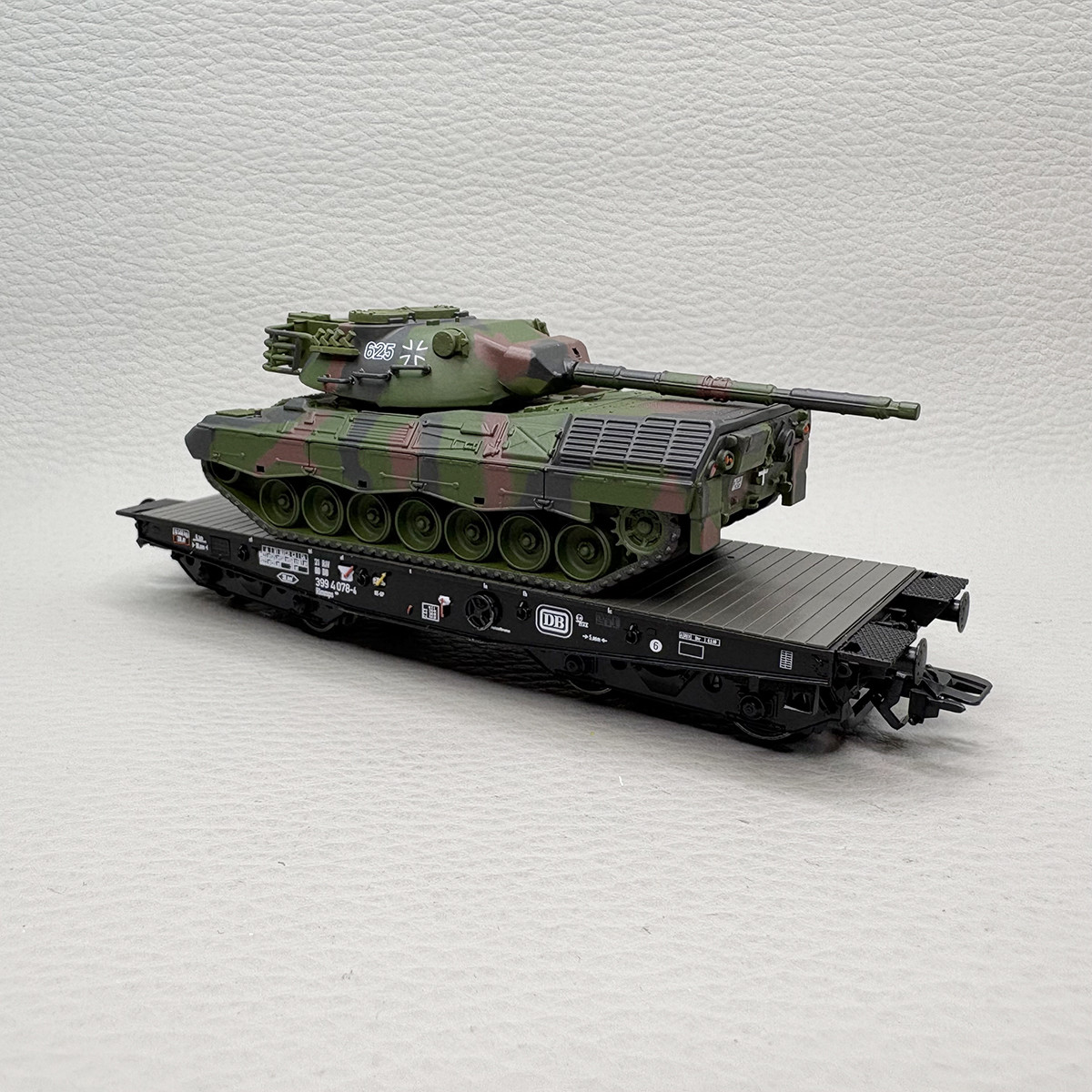Wagon plat Rlmmps 650, transport lourd, avec char Leopard 1A1, DB, Ep. IV - MARKLIN 48878 - HO 1/87